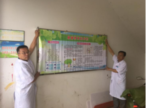 北環醫院張慶華副院長和醫務科的牛曉寧主任一起將健康教育宣傳欄換成新制作的,內容有“愛眼健康歌”、“正確做眼保健操”、“中暑的急救方法”等。