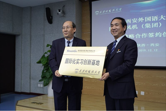 陜鼓集團(tuán)黨委書記、董事長李宏安與西安外國語大學(xué)校長王軍哲代表校企簽訂了戰(zhàn)略合作協(xié)議。西安外國語大學(xué)授予陜鼓“國際化實(shí)習(xí)創(chuàng)新基地”牌匾,陜鼓授予西安外國語大學(xué)“國際化人才聯(lián)合培養(yǎng)基地”牌匾。